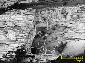 Kính hiển vi điện tử quét SEM của TESCAN là một thiết bị lý tưởng phục vụ cho việc quan sát bề mặt của các vật liệu không dẫn điện như Gỗ, Vải và Giấy,... nhờ có độ phân giải cao và độ sâu ảnh lớn.